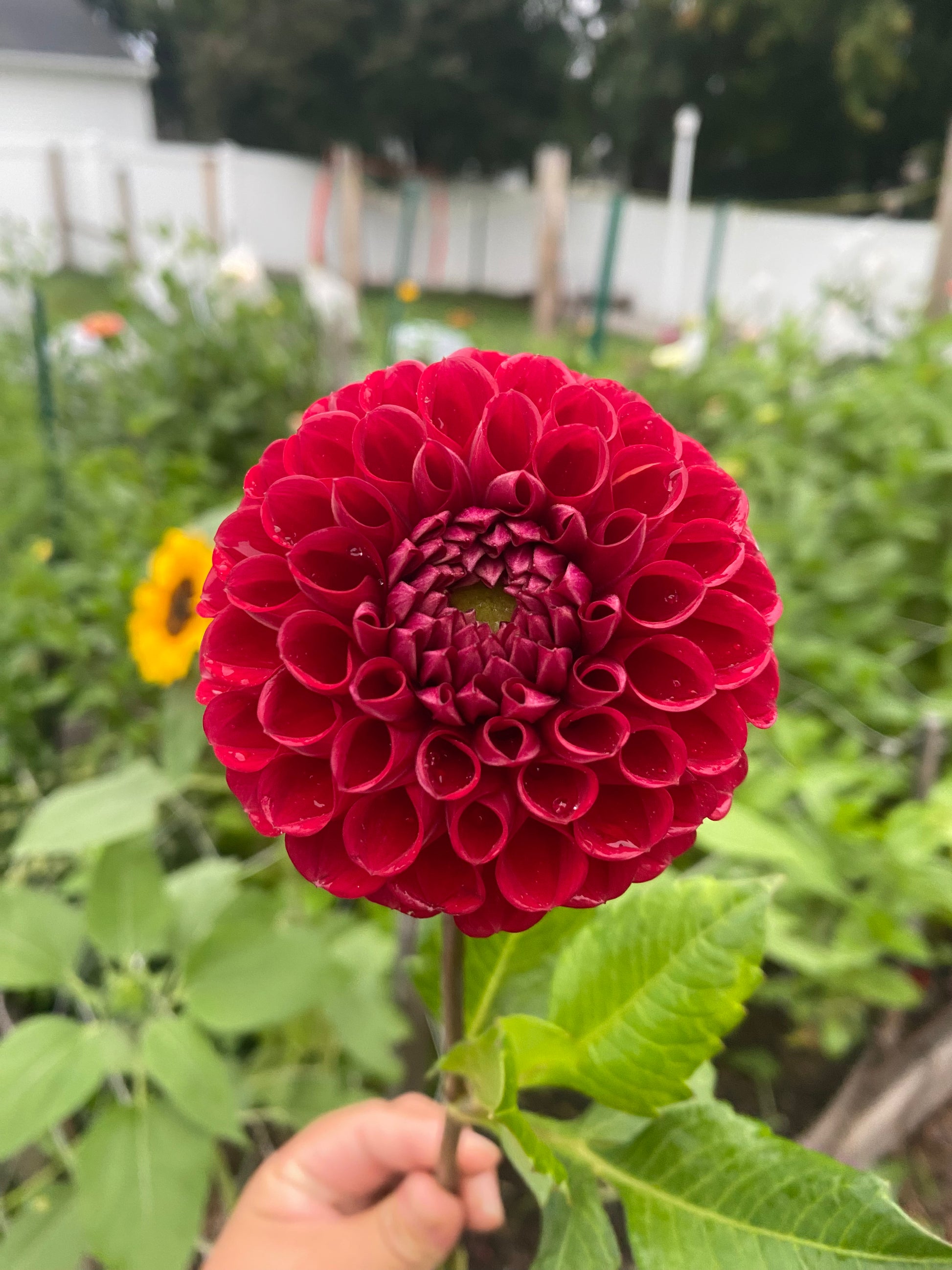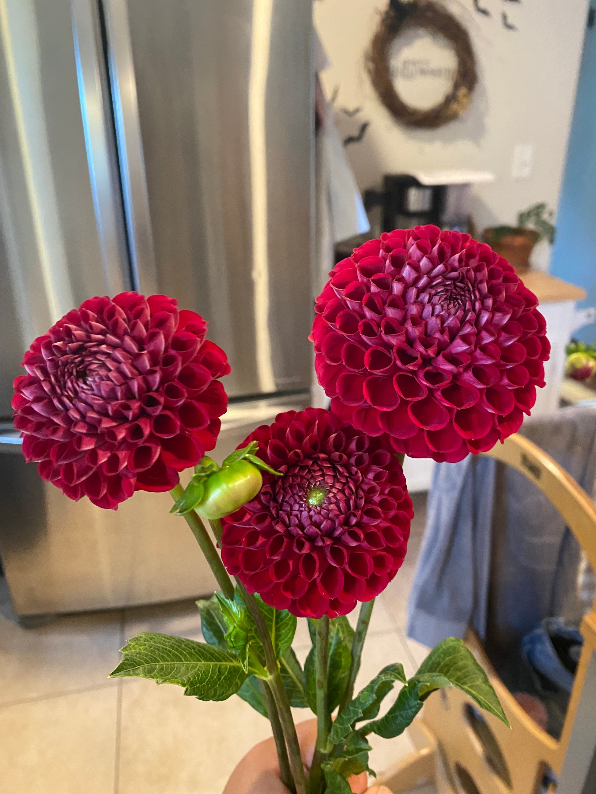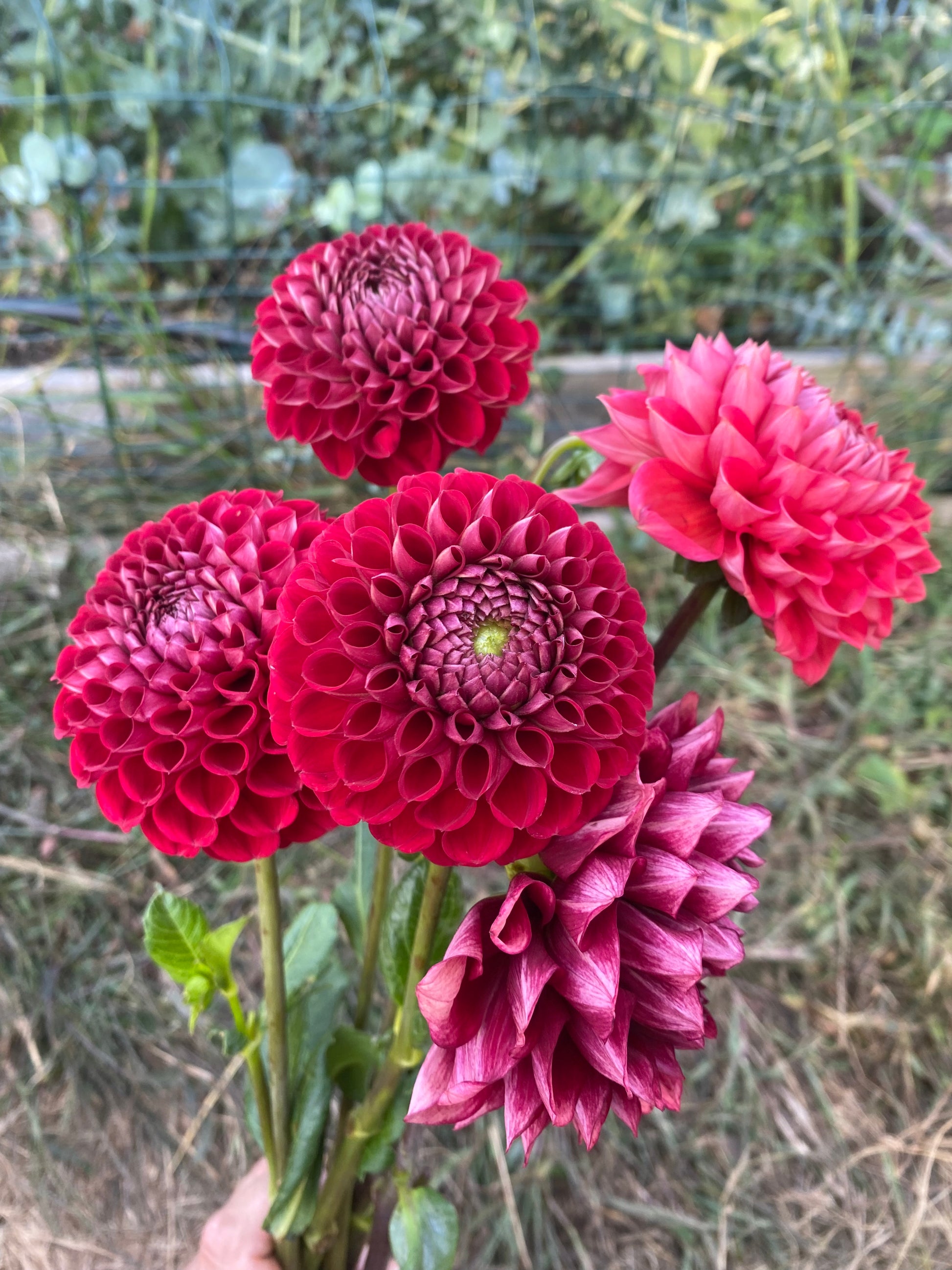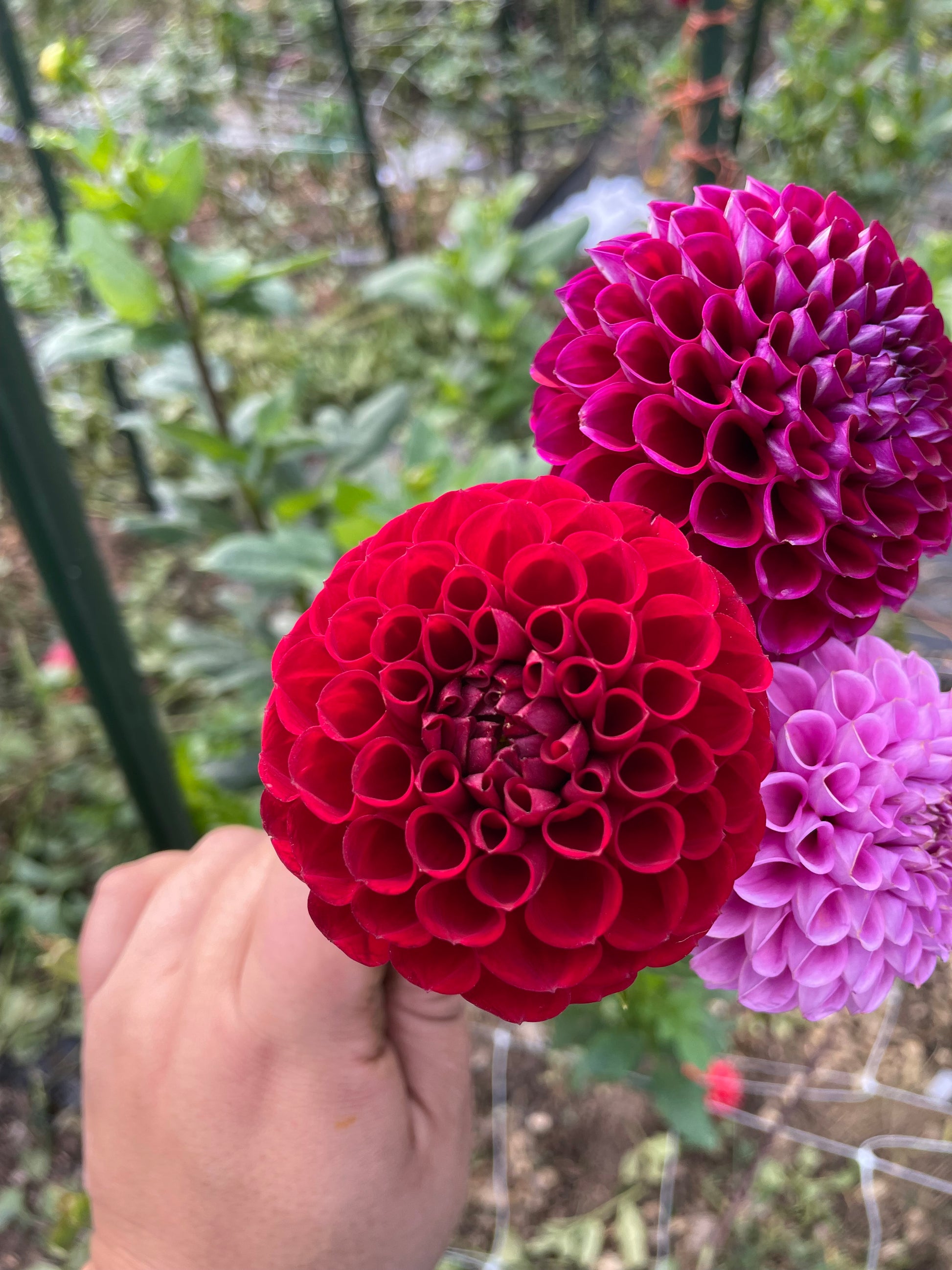 If you’re growing to grow a red dahlia, make it Cornel. Perfect for fall arrangements, very healthy and prolific plants. Tuber production is always excellent and the tubers are very easy to store. This ball dahlia outlasts other varieties in the vase for us. There’s a reason Cornel is tried and true!