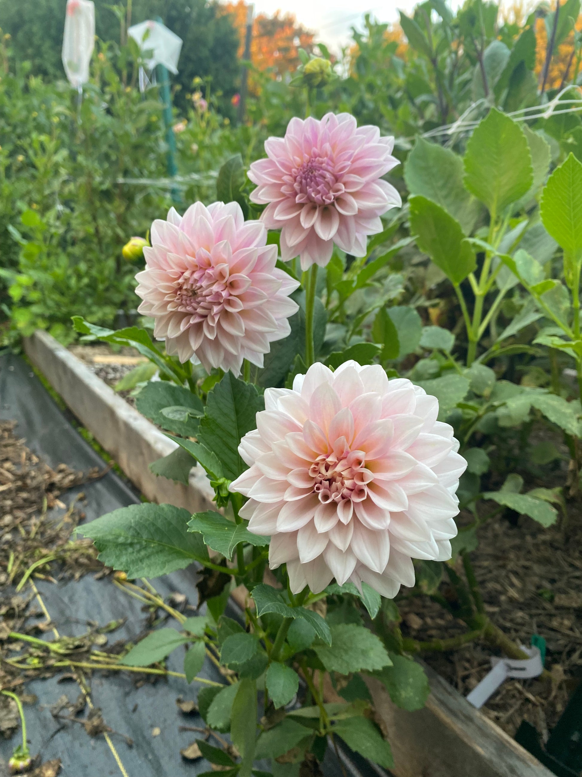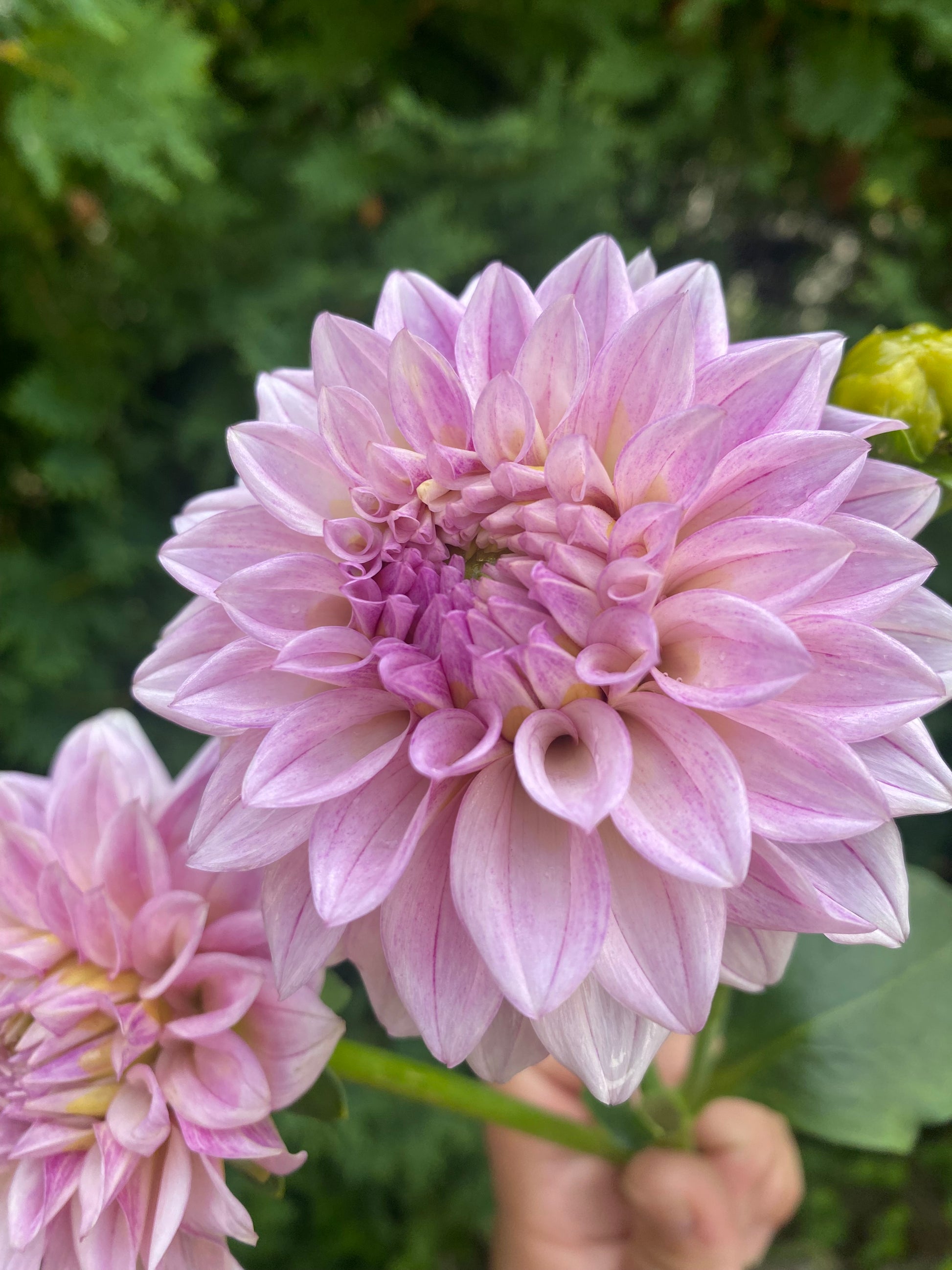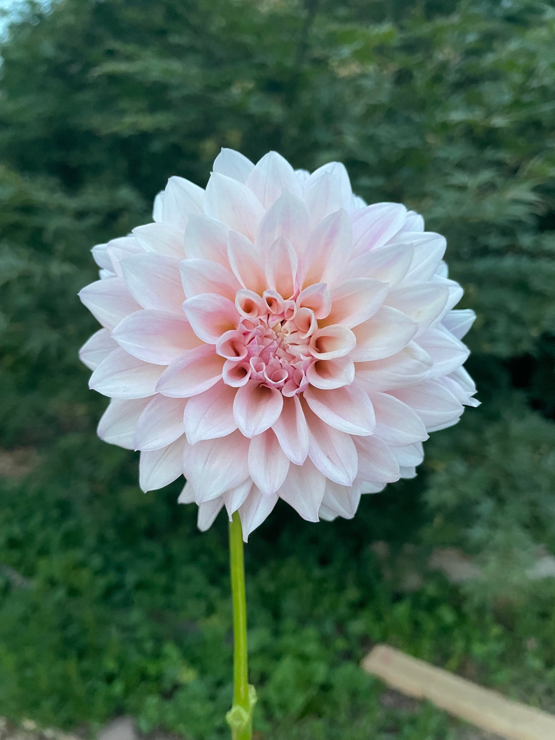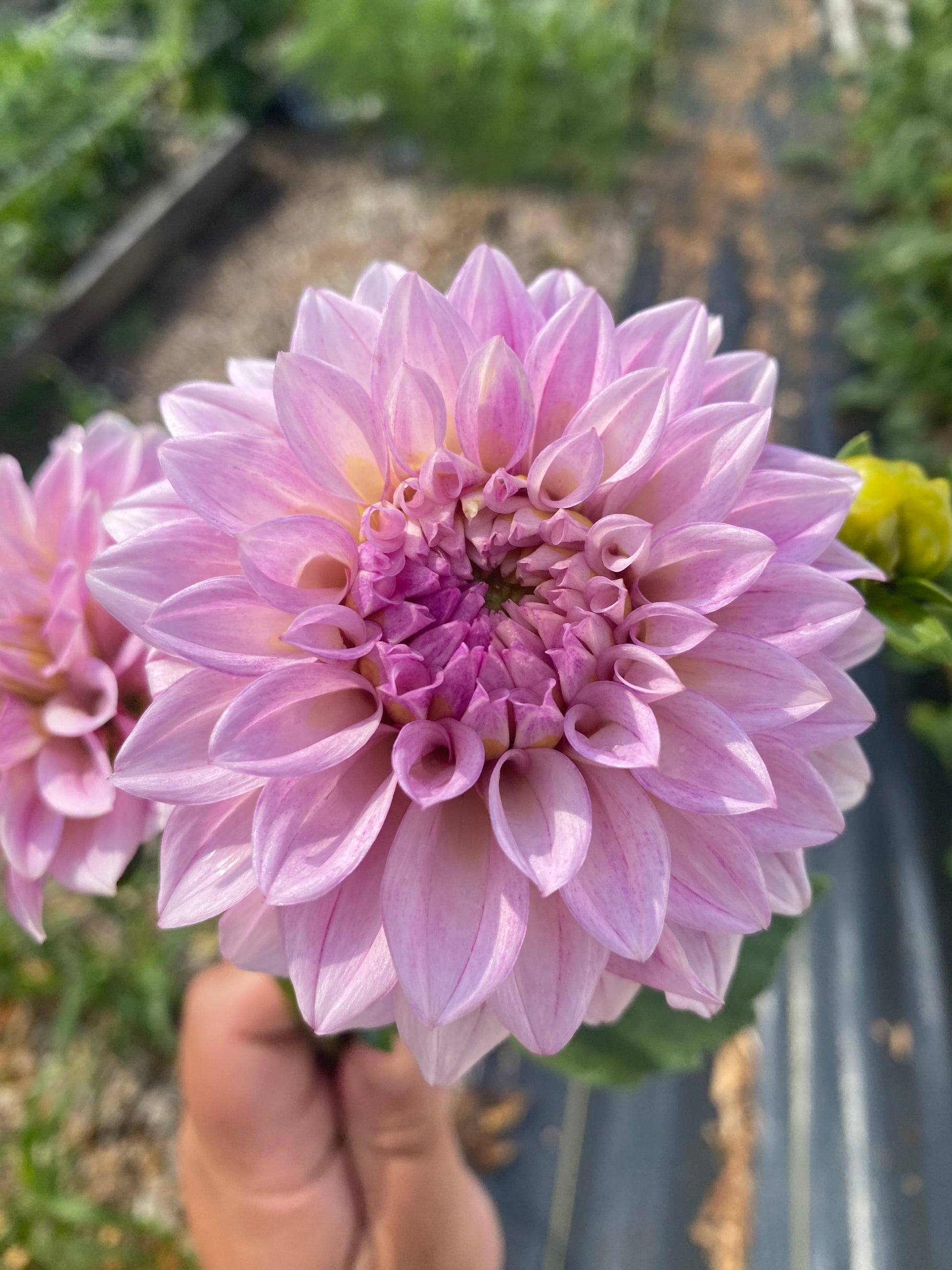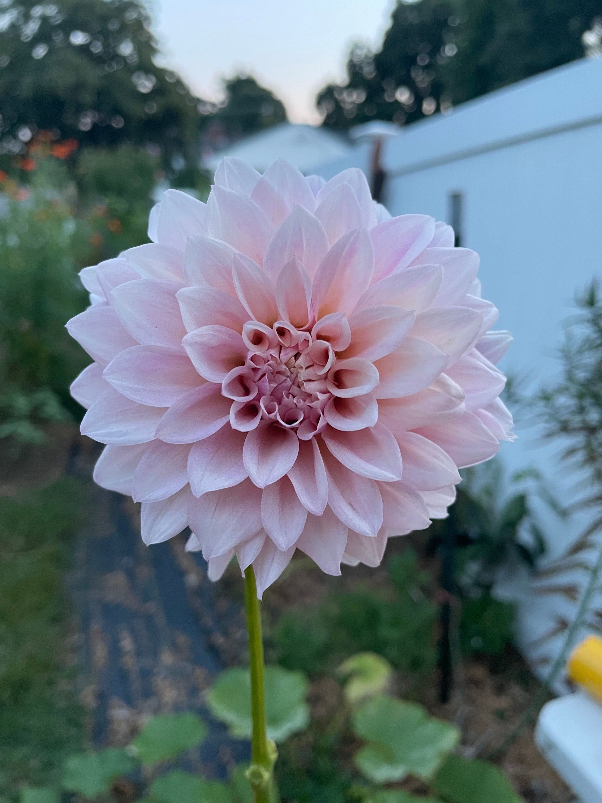 Mocha Jake never stops blooming. A perfect ice pink, sometimes throws more blushy/white blooms. Early in the season, blooms were showing more lavender.