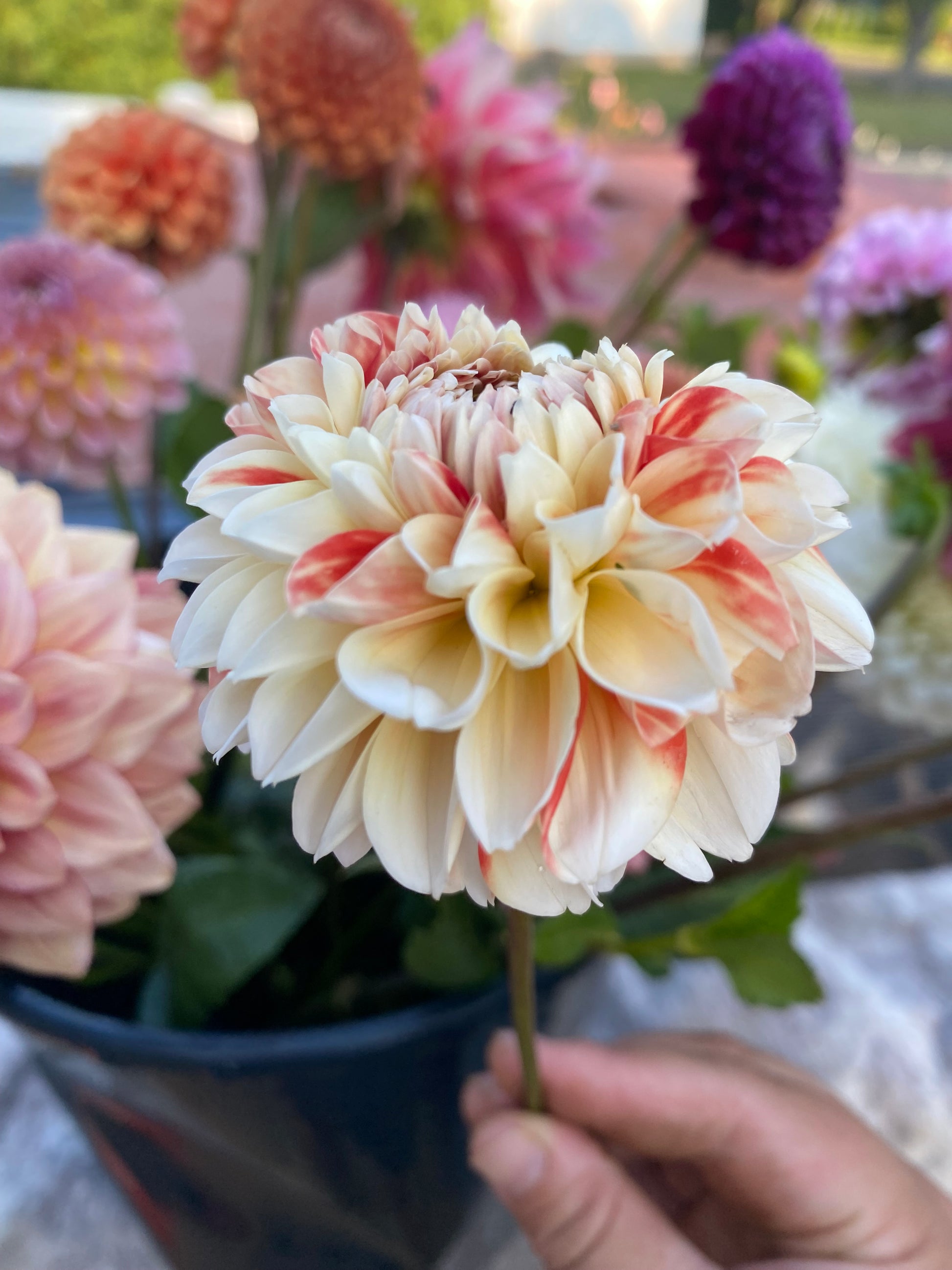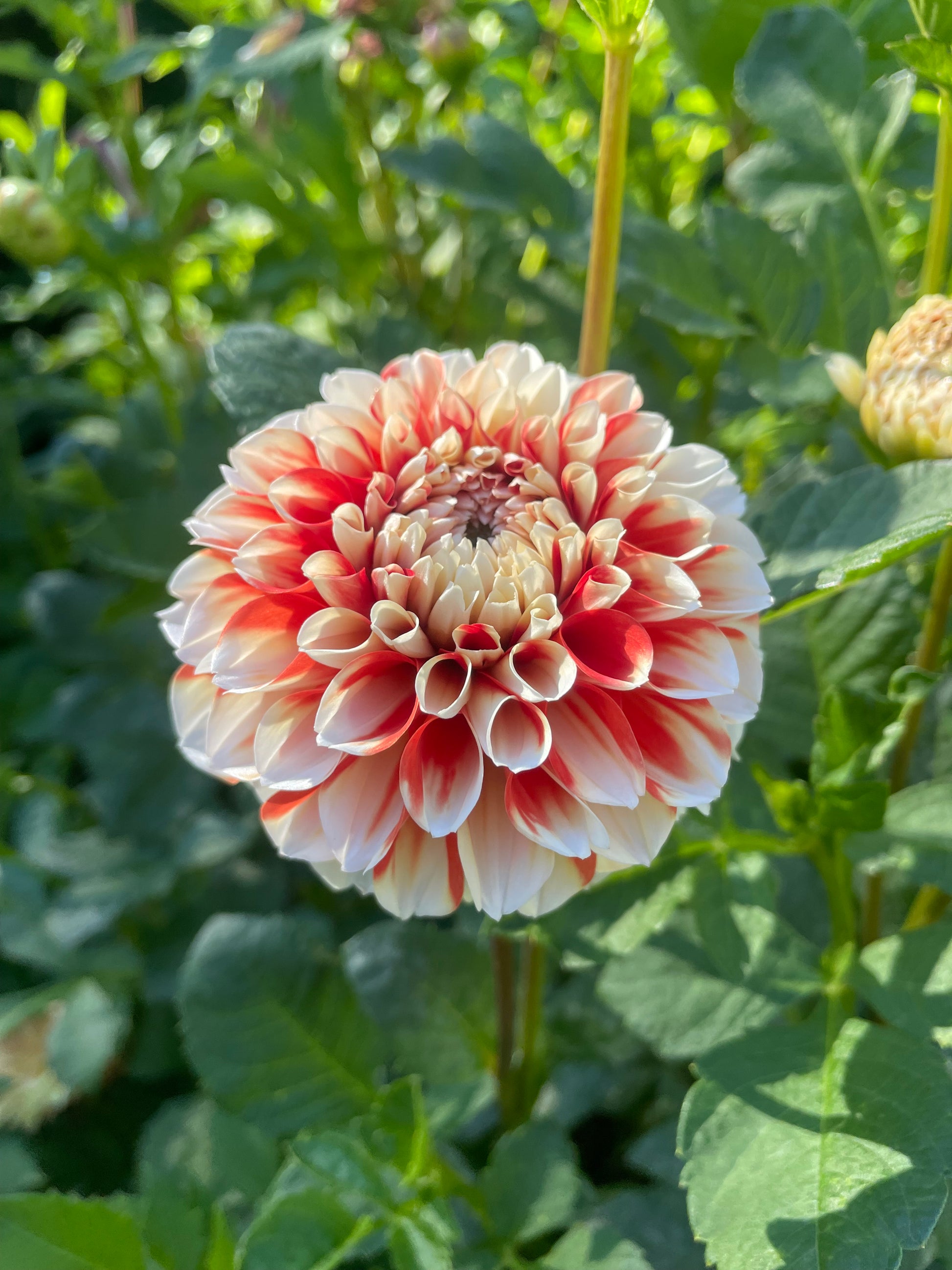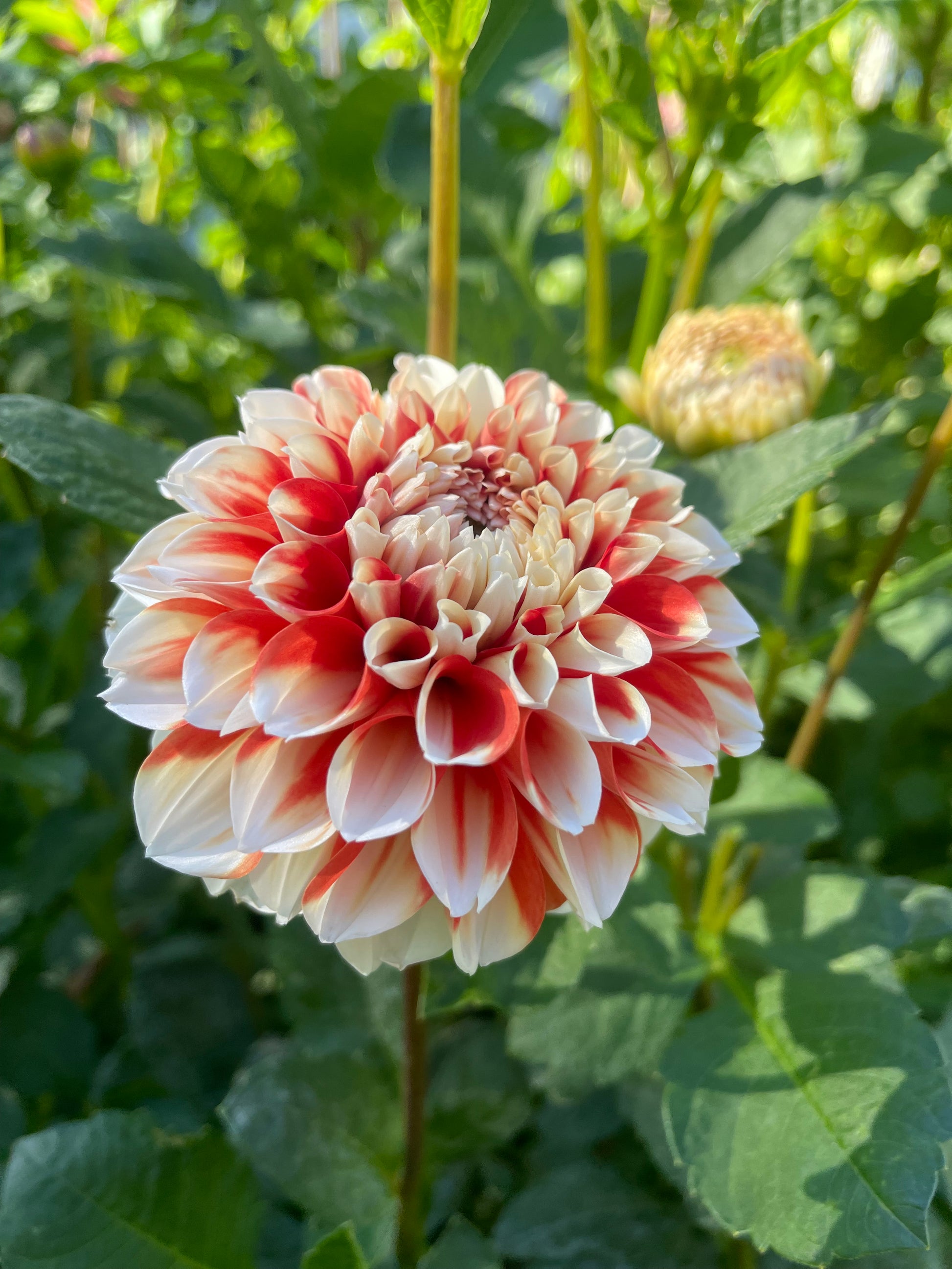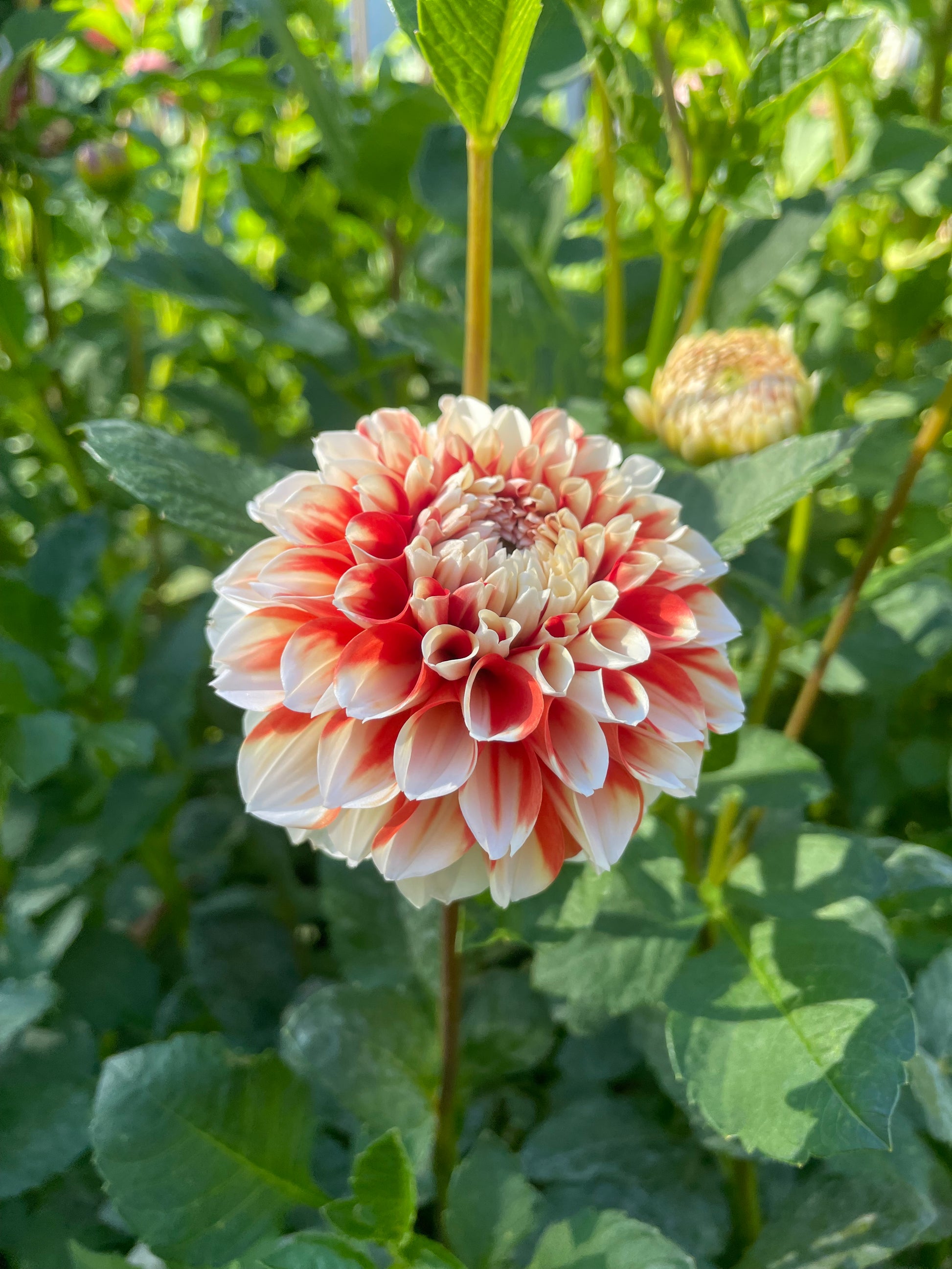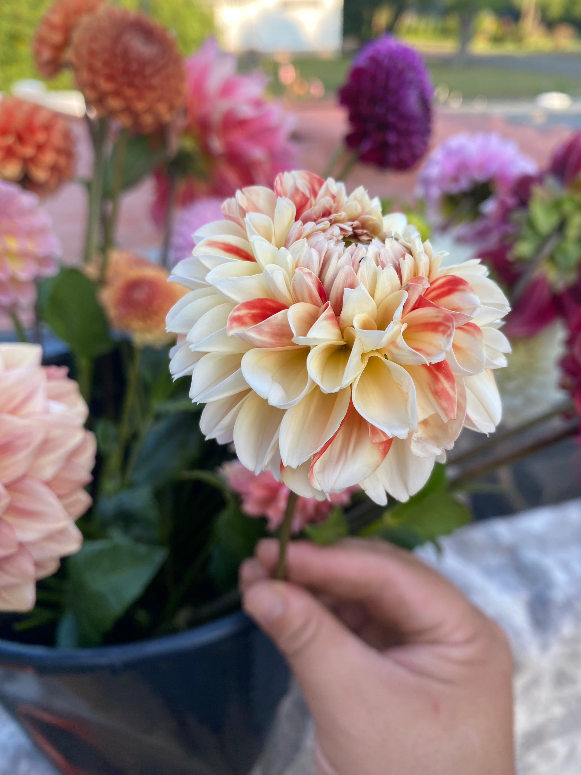 The Koi fish dahlia! A striking bicolor dahlia in creamy white and orangey-red. I couldn’t believe how perfectly cream the petals were! Ball form.