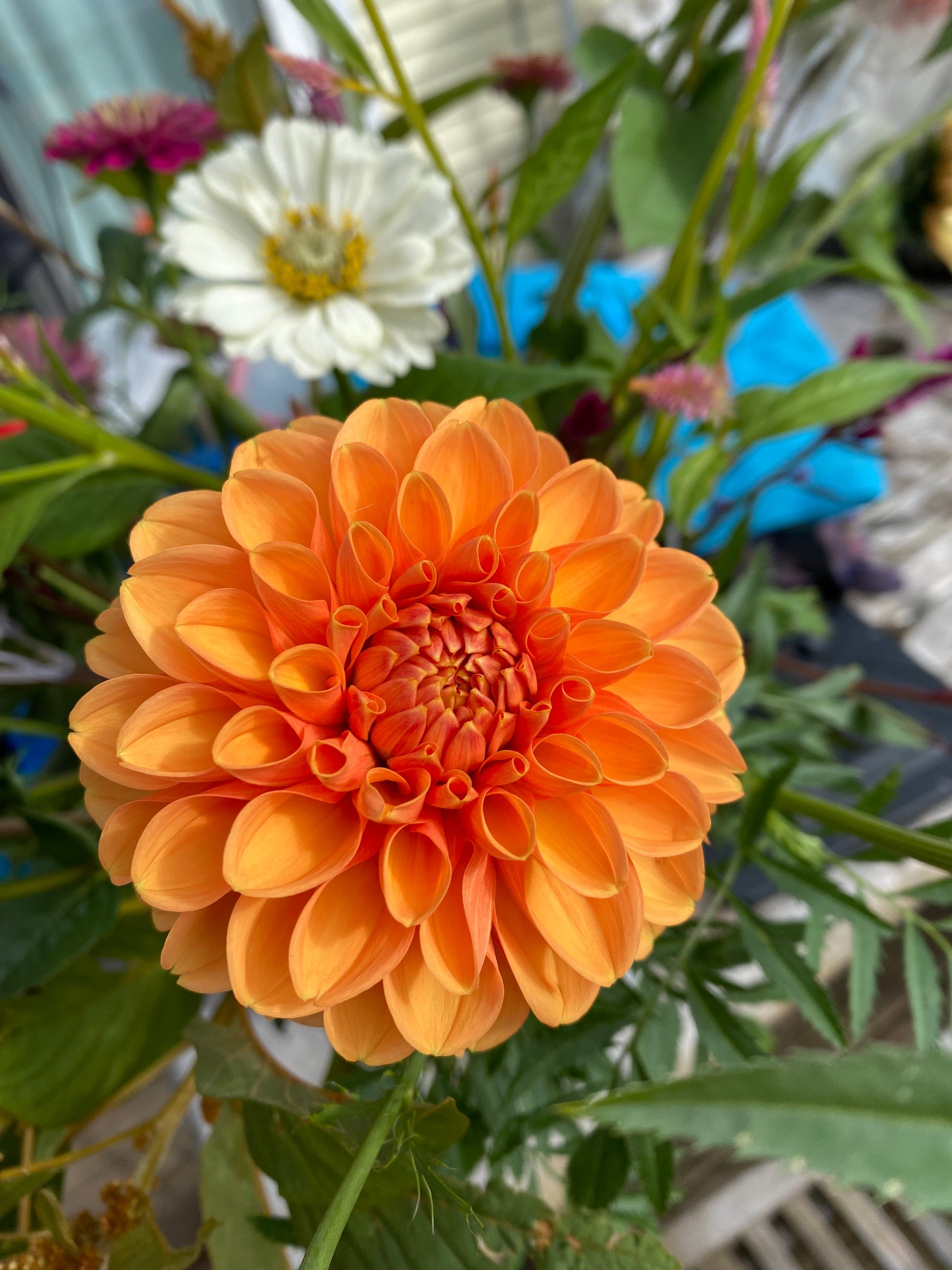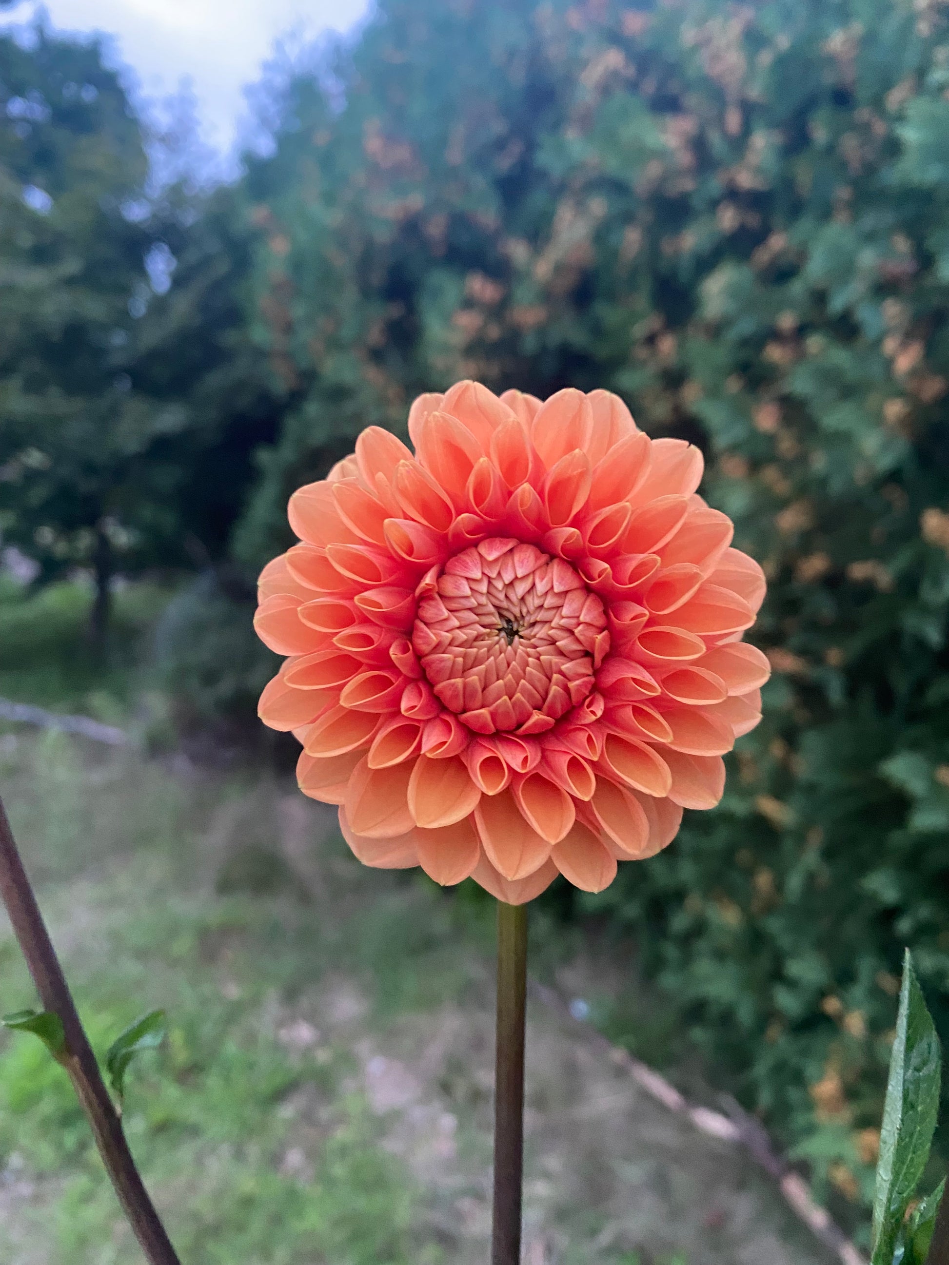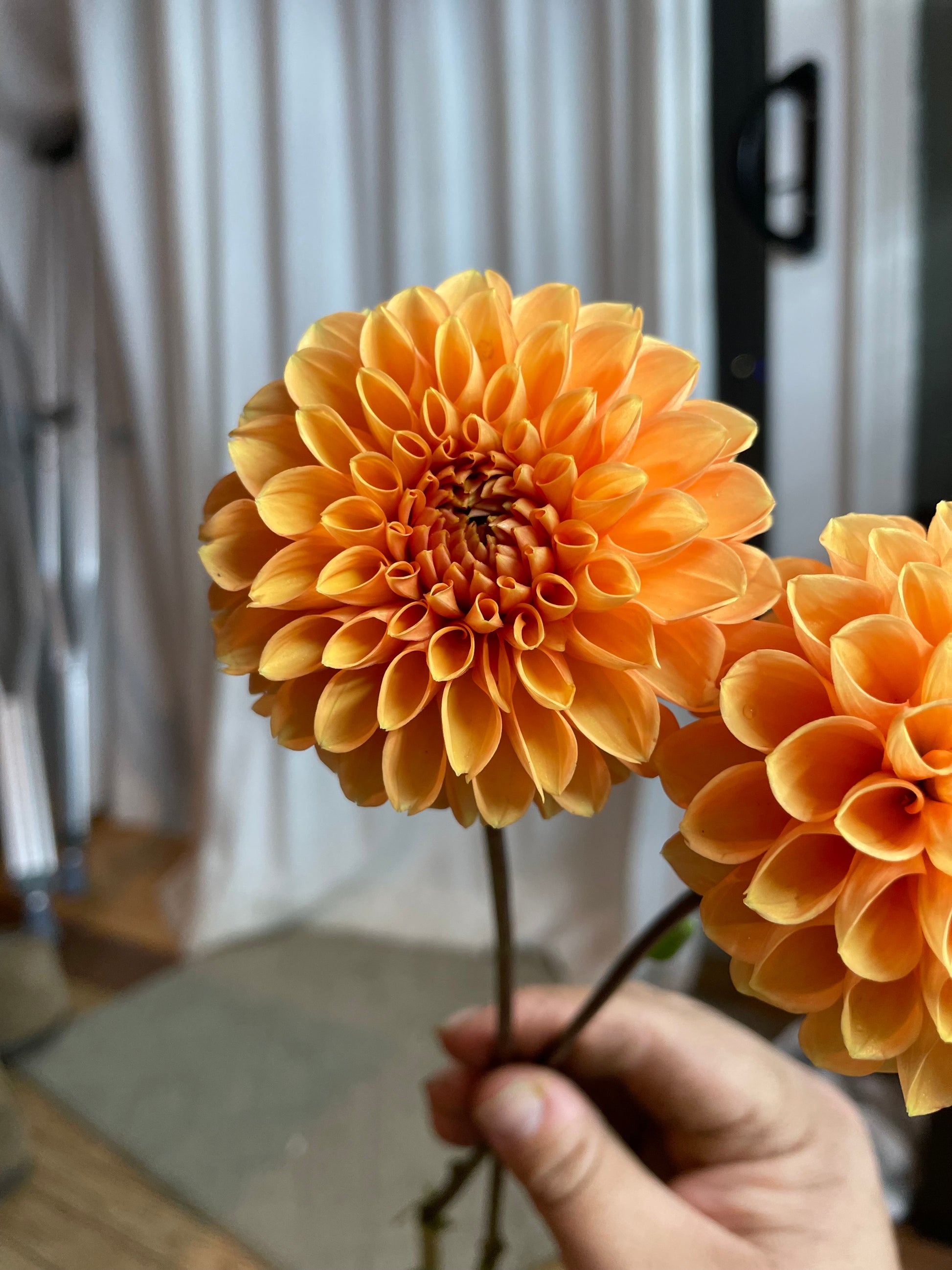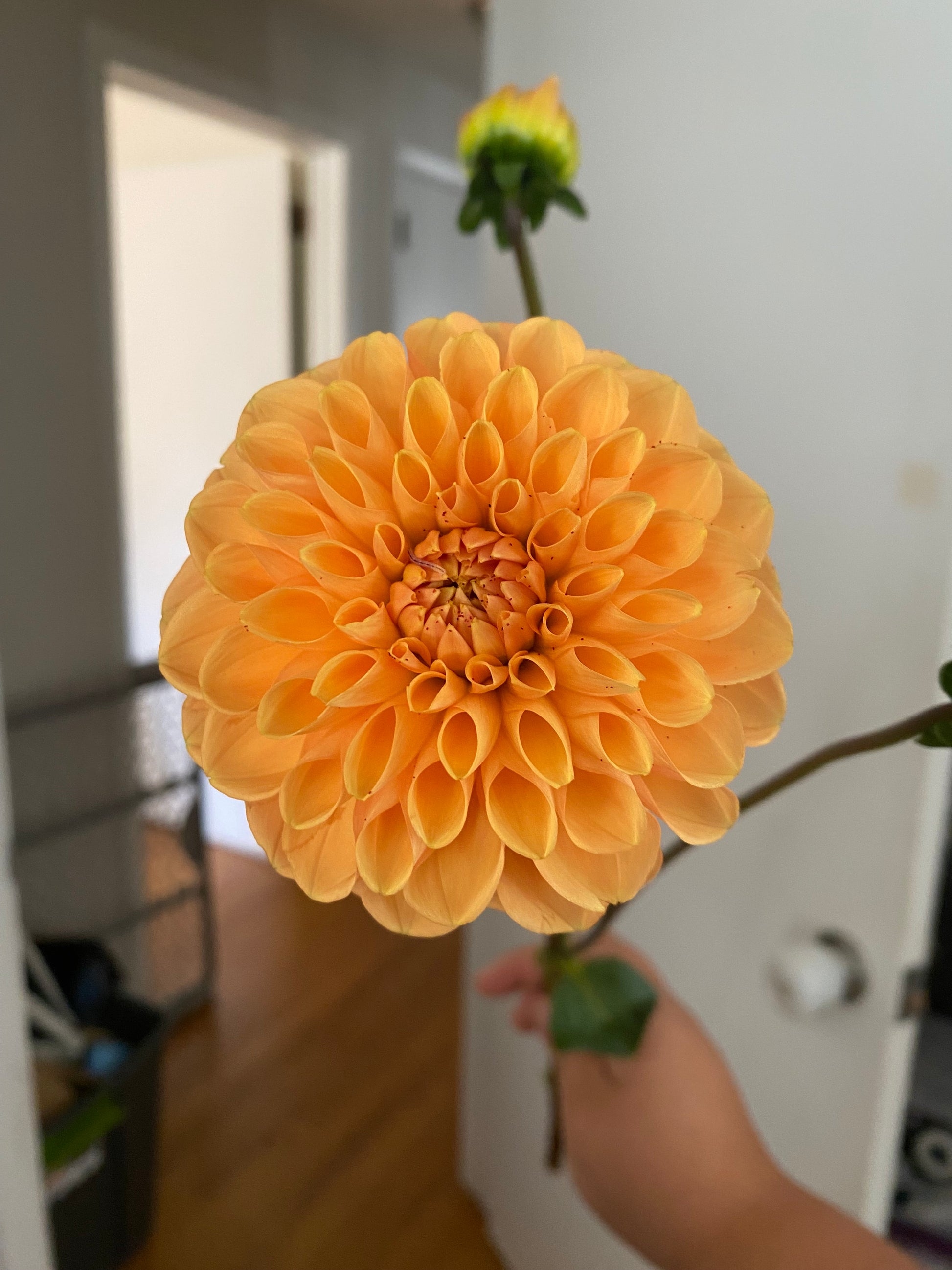 My go to orange! We’ve grown this cultivar every year since I can remember. This is one of our most productive bloomers and tuber producers, with long dark stems. Stems and strong, bloom attachment is excellent, and blooms are upward facing making this a perfect cutting variety.