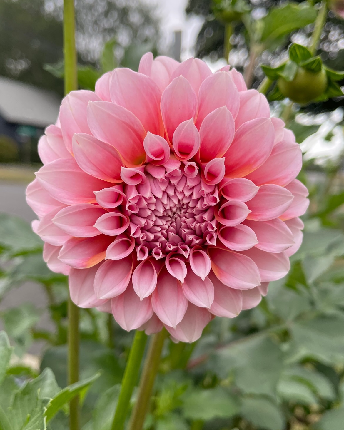 We found this dahlia to be more of a pale pink with light orange creamsicle streaking on some of the petals in our field than the ADS classification of bicolor orange and white.